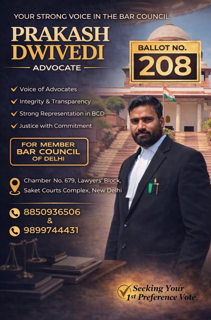 Prakash Dwivedi is a dedicated legal professional committed to justice, transparency, and ethical advocacy. With years of experience in the legal field, he understands the real challenges faced by lawyers today. He is contesting for the Bar Council of Delhi to bring meaningful reforms, strengthen representation, and protect the rights of the legal fraternity. His mission is to build a more transparent, accountable, and lawyer-friendly system.
